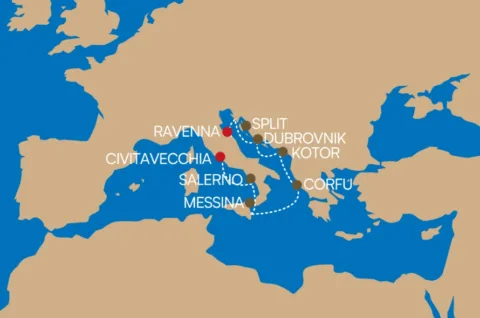 Split, Dubrovnik, Kotor, Corfu, Messina, Salerno, Civitavecchia