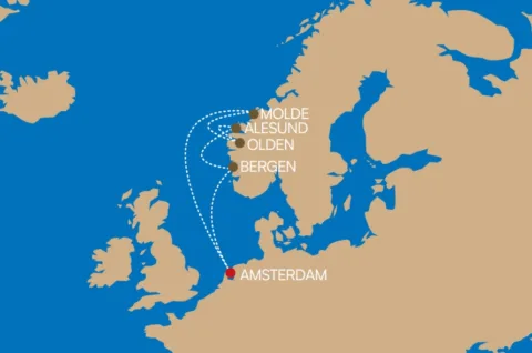 Today’s stop is the picturesque village of Olden. Nature lovers can take an optional excursion to the magnificent Briksdal Glacier, with its towering cliffs and deep-blue ice. Prefer something calmer? Enjoy a lakeside walk or take a relaxing boat ride through Nordfjord.
