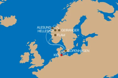 Copenhagen, Hellesylt, Geiranger, Alesund, Flam